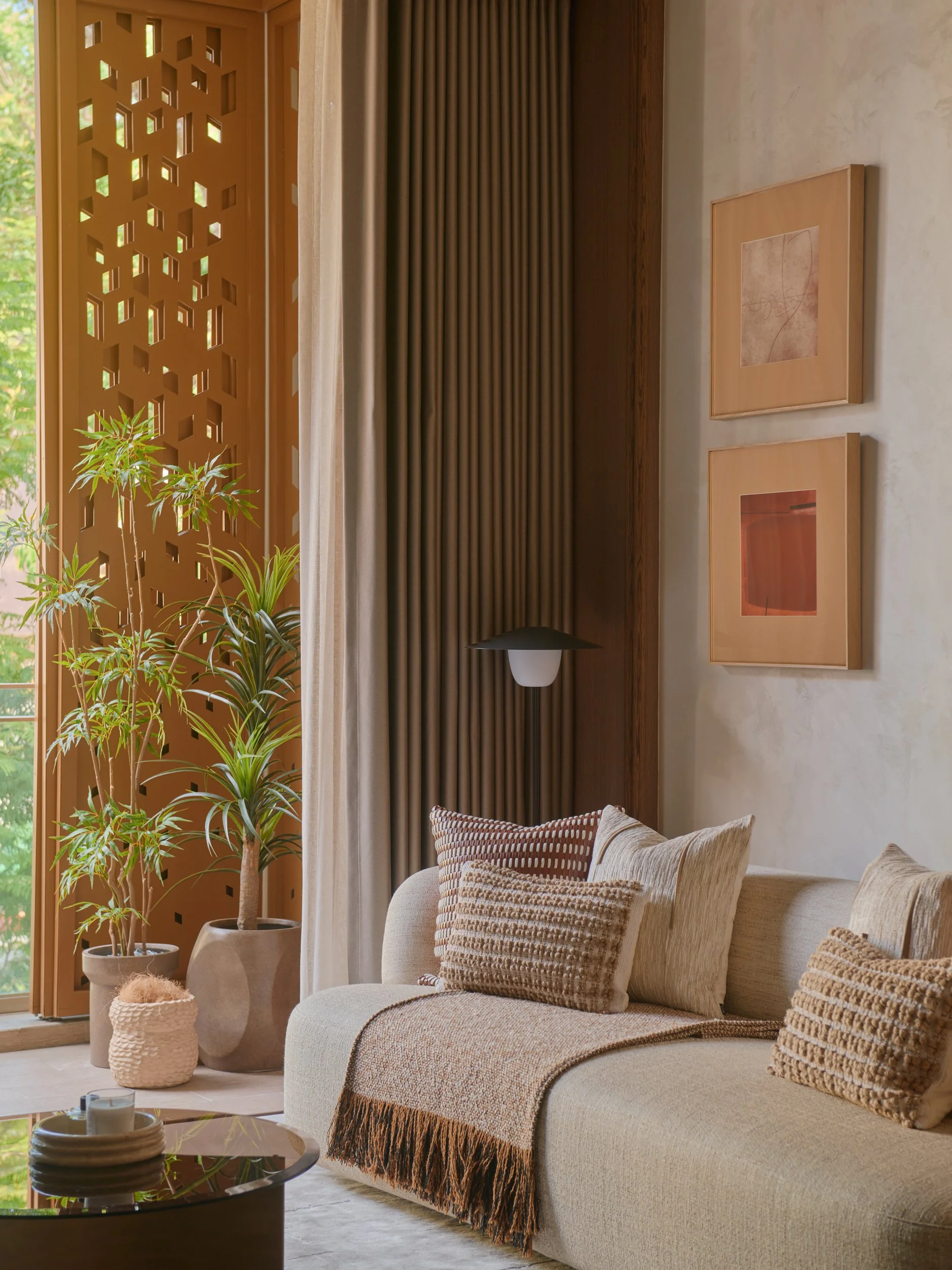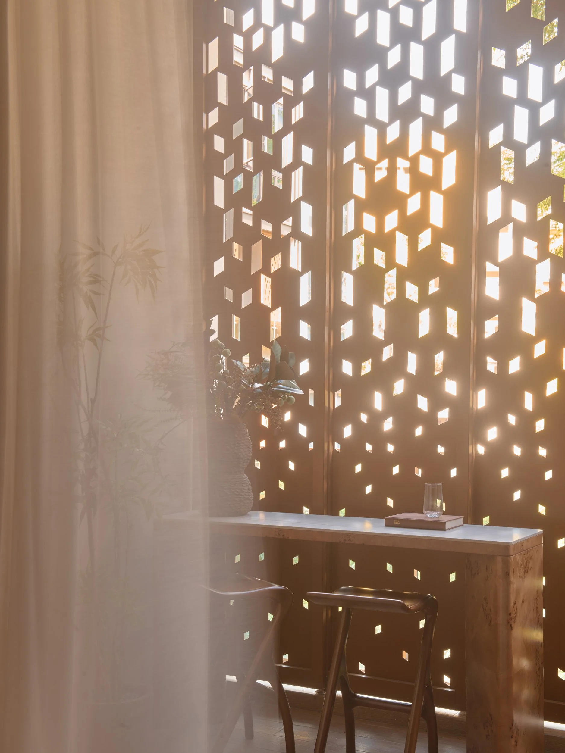 Filtered light, layered textures, and a quiet corner to pause.